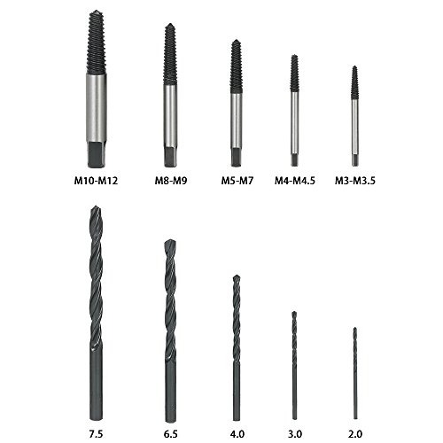 - それは、5つのドリルと5つのスクリューエクストラクタを1組で備えています。