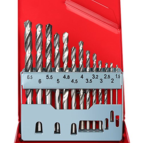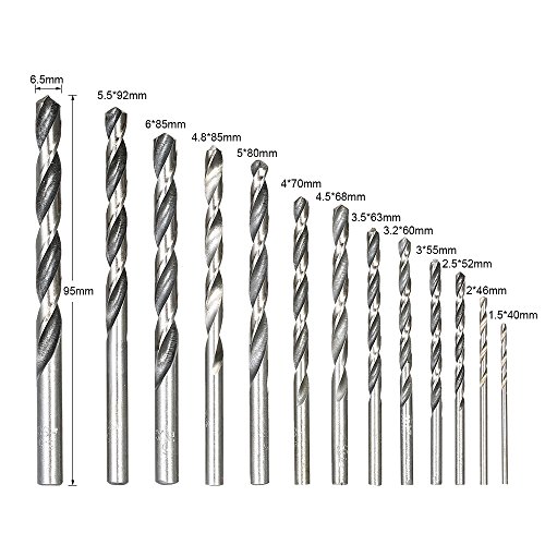 KKmoon 13本セット ドリル ビット セット 高速ドリル 1.5-6.5mm HSSドリルビット 丸シャンク 掘削面取りツール