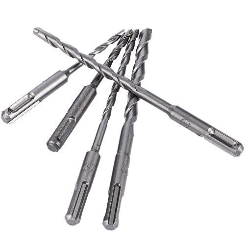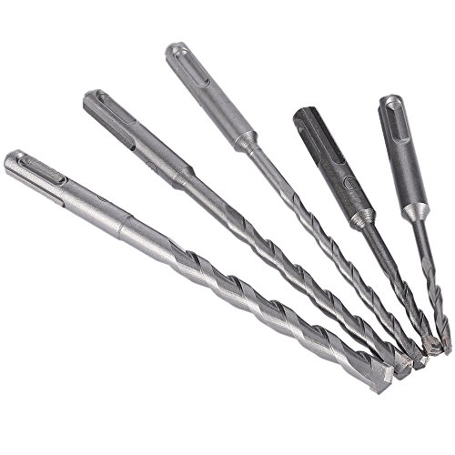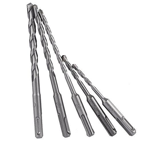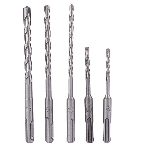 KKmoon 5本セット SDS電動ハンマードリルビットセット SDSプラス ロータリーハンマードリルビットセット 5mm 6mm 6mm 8mm 10mm 2穴 2溝 コンクリートドリルビット