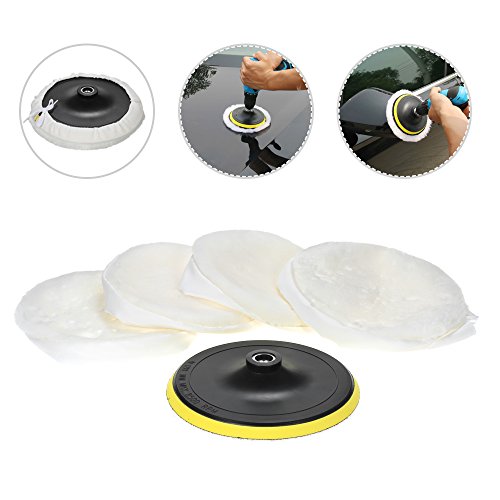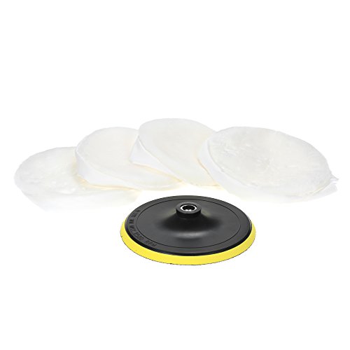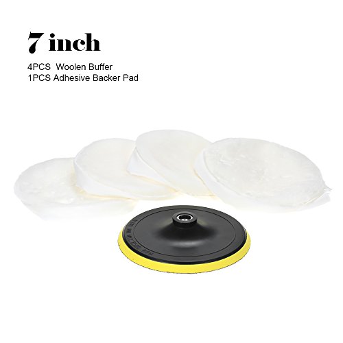 KKmoon 「5点セット」 ポリッシャー用 ウールバフセット 4個ウールバフ+1個接着パッド 7" 180mm カーポリシング用バフ ワックスバフキット 洗車 垢取り 傷磨き 塗装 研磨