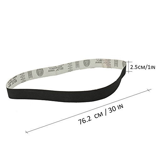 KKmoon 12枚入り サンドペーパー サンディングベルト 1in*30in 粒度400/600/800/10000 各種3個 研磨サンドベルト ブラック 柔らかい布