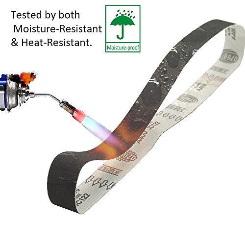 - ▲パックにはそれぞれ400grit / 600grit / 800grit / 1000grit工業品質のサンディングベルトが3枚含まれています。
