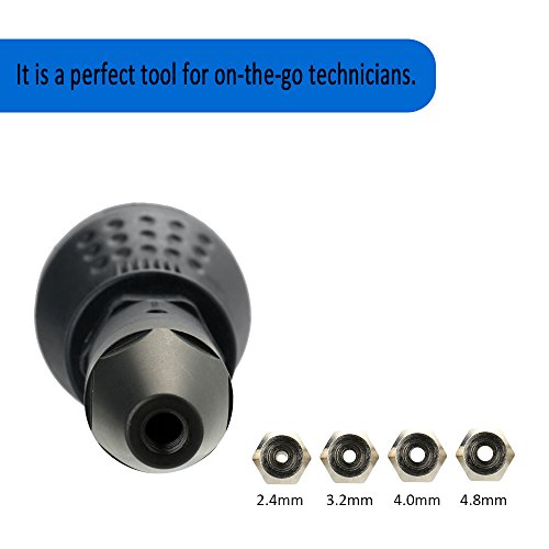 - ▲2.4mm、3.2mm、4.0mmと4.8mmのノズルが含んで、異なる作業ニーズに対応できます。