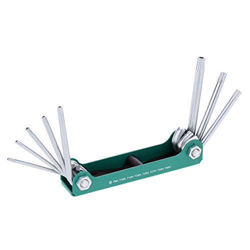 KKmoon 8 in 1 折りたたみスターキーセット スターキーレンチ 折り中空エンド トルクスキーセット アーレンキー 修理ツール T9H T10H T15H T20H T25H T27H T30H T40H