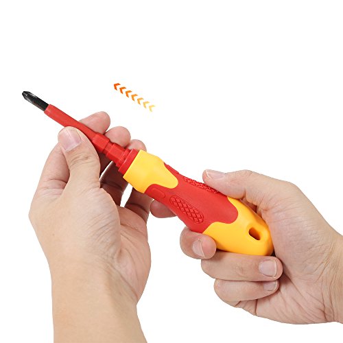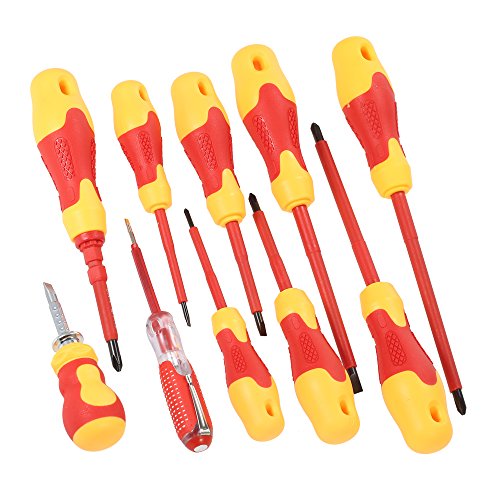 KKmoon 10本セット 1000V 絶縁ドライバーセット 磁気付き 溝付 プラス マイナスビット ソフトグリップ 電気工事 電工 修理ツール