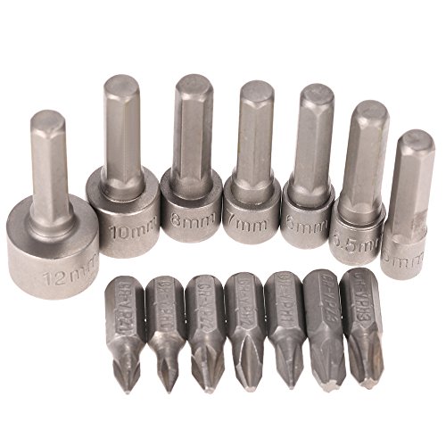 KKmoon 14本セット スクリュードライバビット ソケットセット ドライバービット クロムバナジウム鋼製 メトリック 六角シャンク 変換シャンク 六角ビットセット