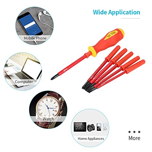 - さまざまな電気的要求を満たすために、6個のフィリップスと異なるサイズのスロット付きビットが含まれています。