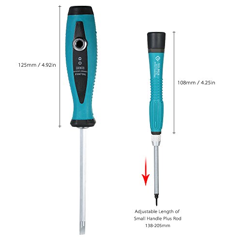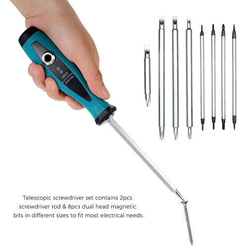 - 伸縮式ドライバーセットには、2個のドライバーロッドと8個のデュアルヘッド磁気ビットが入っています。