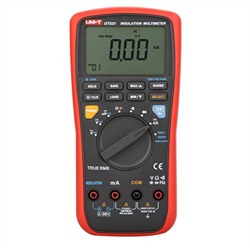 UNI-T UT531 デジタル・マルチメータ付絶縁抵抗計 オーム電流計 500~1000 V レッド&グレー( データホールド機能/オートレンジング/True-RMS/電圧テスト)