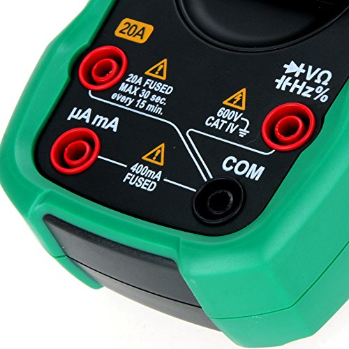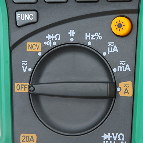 - DC / AC電圧と電流、抵抗、静電容量、ダイオードチェック、継続性、周波数とデューティ?サイクルをテストします。