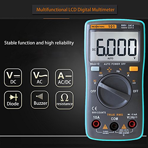 KKmoon RM101 デジタルマルチメータ LCDマルチメータ DMMマルチメータ True RMS/DC AC電圧/電流/抵抗ダイオード容量/静電容量測定 自動 極性識別電流計電圧計オーム