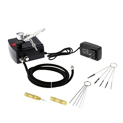 KKmoon エアブラシ エアコンプレッサー エアブラシアクセサリーキット 100-250V プロ 重力式フィード デュアルアクション 芸術 絵画 塗装 マニキュア ケーキスプレー モデル 美爪 ネイルアート用 エアブラシ針 ホルダー ニードル付き (エアブラシ+エアコンプレッサー+3本セット洗浄針キット)