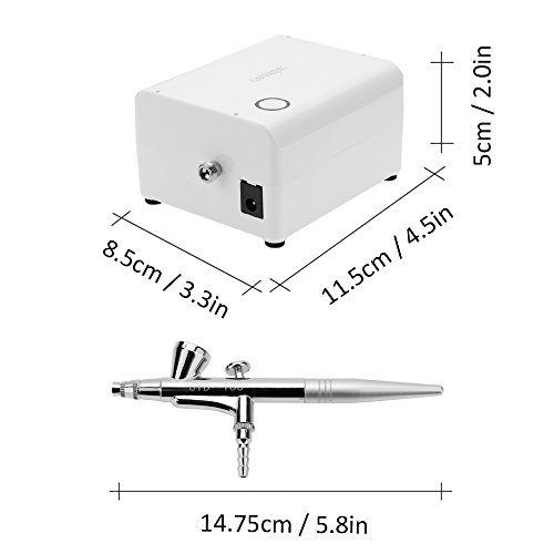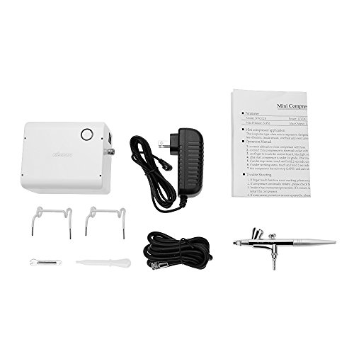 KKmoon エアブラシ エアコンプレッサーキット オイルレス 小型 静音 スプレーポンプ ペン セット 美容アート 塗装 工芸 ケーキ飾り モデル作り用