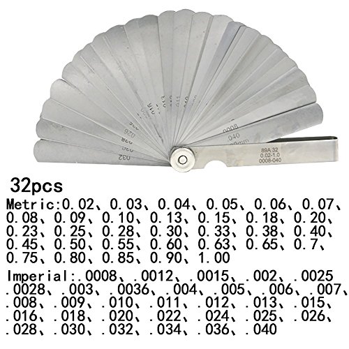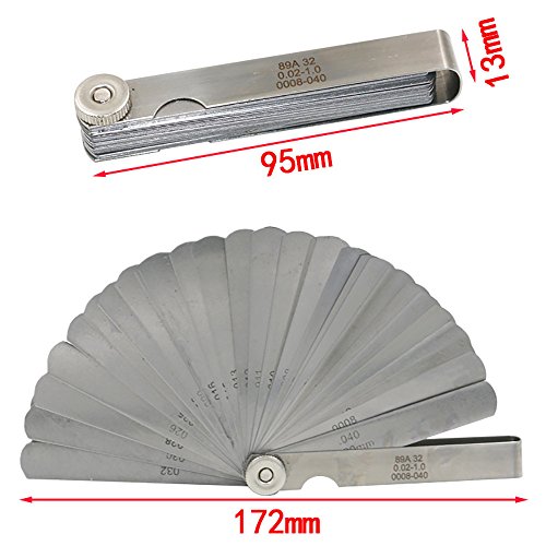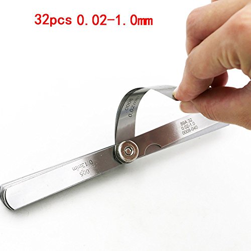 KKmoon 32枚 ステンレス鋼 シックネスゲージ ブレード フィラーフィーラーゲージ 0.02-1.0mm 厚さゲージ 隙測定ツール 測定工具