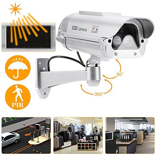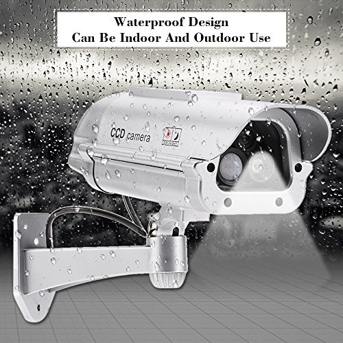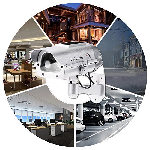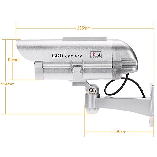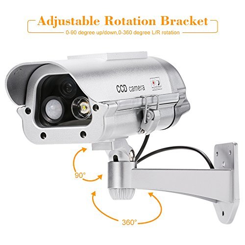 This simulation security camera is made of high quality and durable material.It has an adjustable rotation bracket which can be rotated 0-90 degrees up/down and 360 degrees in horizontal direction. The built-in light flashes in 3 times in every 3 seconds.It is ideal for home, office, shopping mall, park, parking lot and other indoor or outdoor use.
