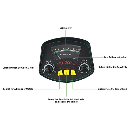 KKmoon MD3009II 金属探知機 高感度 メタル検知器 調節可能 アラーム 下地探し 宝探し トレジャーハンター (ゴールド)