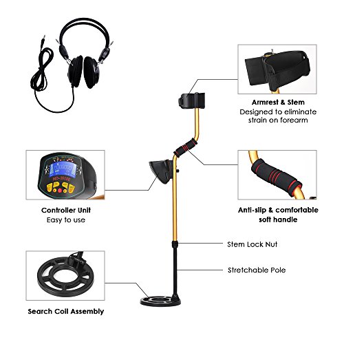 - ★防水検索コイル - 浅い水の中に金属探知機を使用することができます。アームレスト&ステム - 前腕に負担をかけないように設計されています。ナイロン製のブラケットは、アームで検出器を長時間保持した後、ハンドコンパートメントのスリップをさらに確実にします。