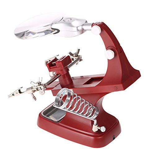 この多機能拡大鏡は、特に、はんだ付けまたは他の修理作業のために設計されています。ワニ口クリップと調節可能なはんだごてホルダーでは、あなたの疲れた手をリラックスすることができ、アイテムを拡大することにより、より効率的に作業します。