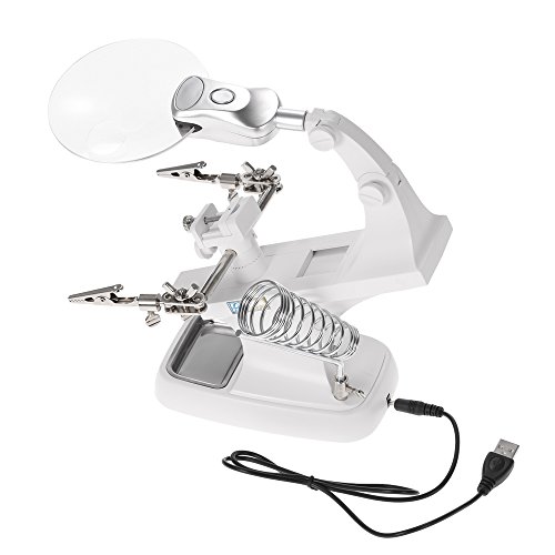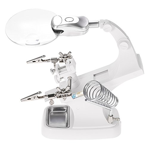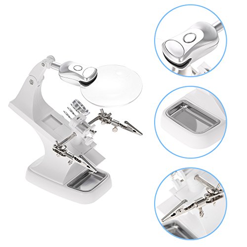 この多機能拡大鏡は、特に、はんだ付けまたは他の修理作業のために設計されています。ワニ口クリップと調節可能なはんだごてホルダーでは、あなたの疲れた手をリラックスすることができ、アイテムを拡大することにより、より効率的に作業します。