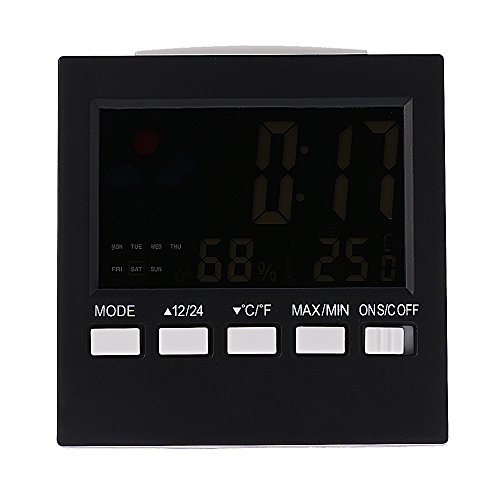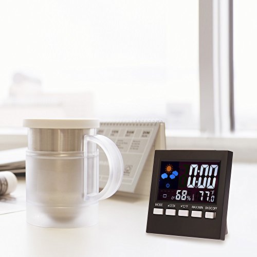 - デジタル温度と湿度クロックは、家庭での使用に最適です。これは、テーブルの上に置くことができます。大型の色鮮やかな液晶ディスプレイは、簡単に値を読み取ることができます。