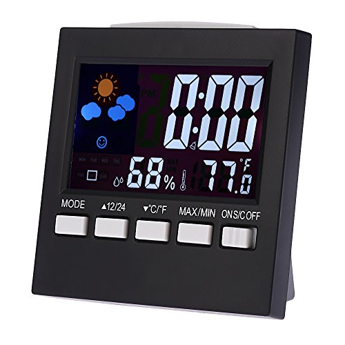 KKmoon デジタル温度計湿度計 LCD温度計湿度計 温湿度計 時計アラームスヌーズ/カレンダー天気予報の表示機能