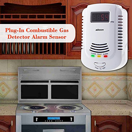 KKmoon 可燃性ガス検知器 プラグイン アラームセンサー プラグイン 音声警告と9ボルトバッテリバックアップ機能付き