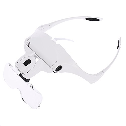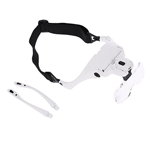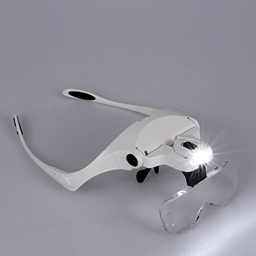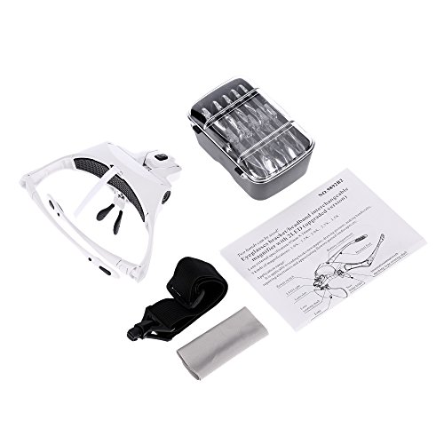 - 使用するのに便利な2つのLEDライト付きメガネタイプの拡大鏡。 交換用の眼鏡ブラケットとヘッドバンドが付いています。