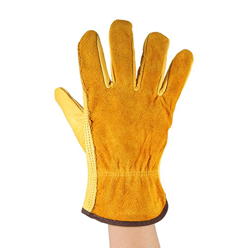 KKmoon 牛革 手袋 革製作業手袋 園芸 採掘 植栽 枝切り手袋 防護手袋 溶接 運転手グローブ セキュリティ 滑り止め 男女両用 Lサイズ