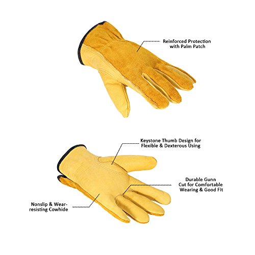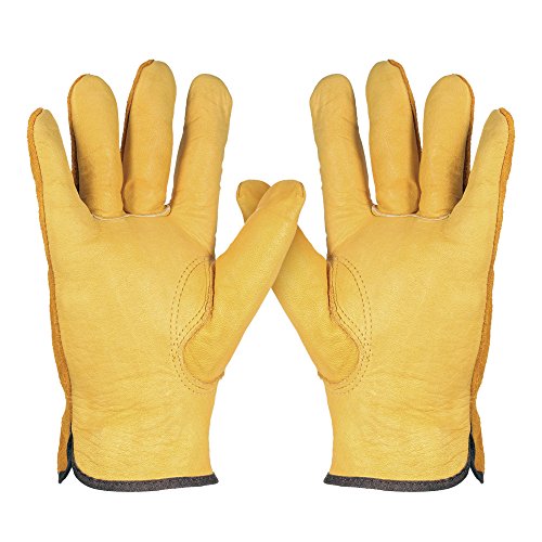 KKmoon 牛革 手袋 革製作業手袋 園芸 採掘 植栽 枝切り手袋 防護手袋 溶接 運転手グローブ セキュリティ 滑り止め 男女両用 XLサイズ