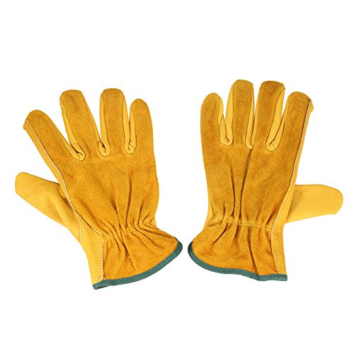 KKmoon 牛革 手袋 革製作業手袋 園芸 採掘 植栽 枝切り手袋 防護手袋 溶接 運転手グローブ セキュリティ 滑り止め 男女両用 Mサイズ
