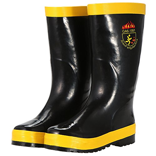 KKmoon 消防用ブーツ 長靴 安全靴 防火ブーツ アンチ火災/アンチパワー/アンチ化学/防水/ノンスリップ 耐滑 消防用ブーツ(240mm)EU41