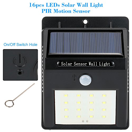 こちらの商品は、16のLEDソーラーウォールライト、PIRモーションセンサーとオート夜センサーの設計は、それは非常に知的で省エネメイクれます。これは、太陽光で充電し、1日の充電後の時間を点灯12時間以上を持っています。しかも、防水機能は、それが広く屋外の場所で使用できます。