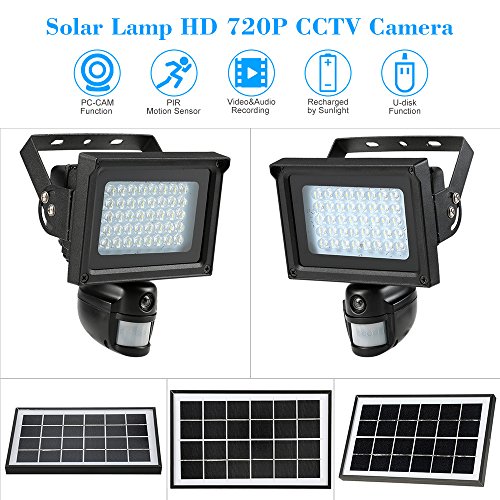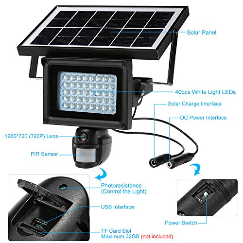 KKmoon 40個 IR ソーラー街路灯 ソーラーLED街灯 ソーラーLED外灯・街灯・庭園灯・防犯灯・駐車場灯 720P HD CCTVセキュリティカメラ DVRレコーダーPIRモーション検知太陽エネルギーチャージ 内蔵のリチウム電池 サポートPC-CAM/TFカード