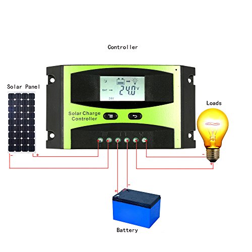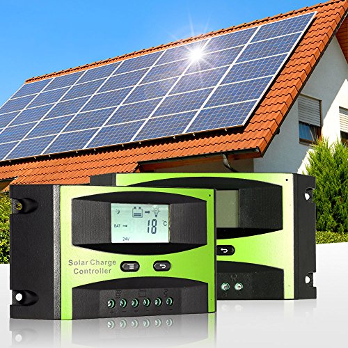 KKmoon ソーラー充電コントローラ 25A 12V / 24V ソーラーチャージコントローラー 太陽光充放電 PWM 温度補償 過負荷保護 ソーラーオフグリッドシステム用 LCDディスプレイ付き