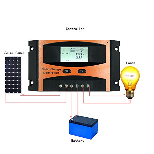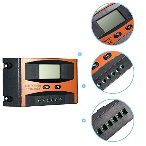KKmoon ソーラー充電コントローラ 20A 12V/24V ソーラーチャージコントローラー 太陽光充放電 PWM 温度補償 過負荷保護 ソーラーオフグリッドシステム用 LCDディスプレイ付き (20A 12V/24V)