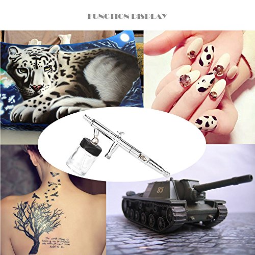 このプロフェッショナルエアブラシは、0.5 mmのニードル&ノズルと3/4の液体カップを備えた精密なデュアルアクションサイフォンフィードです。アートワーク、商業芸術、ボディアート、デザインペインティング、モデルペインティング、フォトレタッチ、趣味や工芸品、車のイラストレーション、テキスタイル、Tシャツペインティングなどのファインアートに最適です。