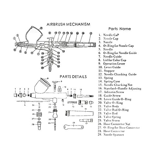 - 0.3mmノズルを備えた多目的精密二重作用重力フィードエアブラシです。