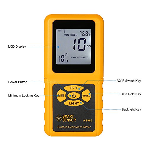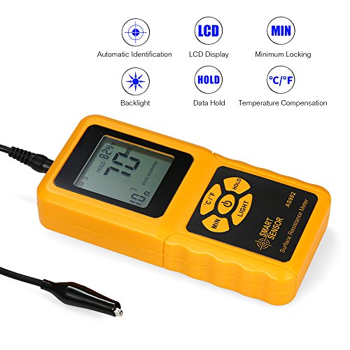KKmoon 抵抗計 温度測定 データ保持機能付き ハンドヘルド LCDディスプレイ 表面抵抗計テスタ