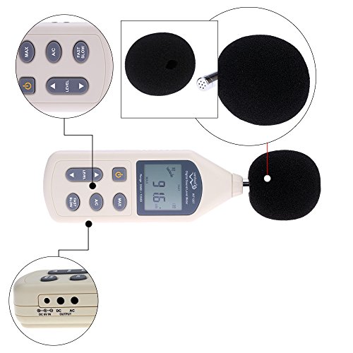 - 読書のための簡単で明確な大型LCDディスプレイ。 広い測定範囲:30〜130デシベル。