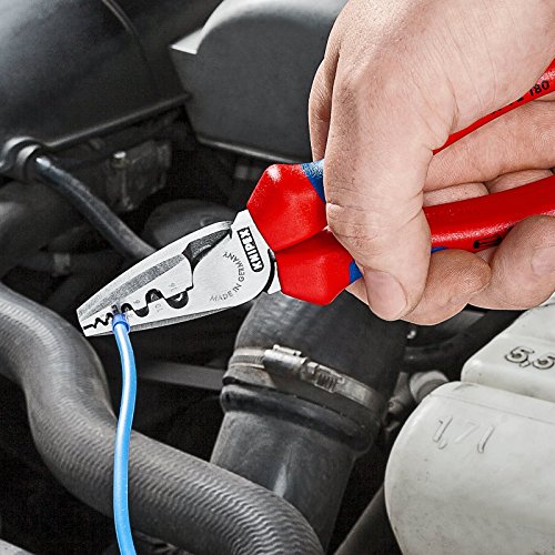 ' Insulated Crimper, Capacity 23 to 5 AWG, Overall Length 7-1/4 In., For Use With For 0.25 to 16mm2 Crimping End Sleeves, Cuts No, Strips No, Adjustable Manual, Handle Type Ergonomic, Features 2-Component, Comfort Grip Handle, Crimps In Half Marked Round Dies, 9 Deep Troughs with Conical Side Faces, Standards DIN 46228 Parts 1 + 4 '