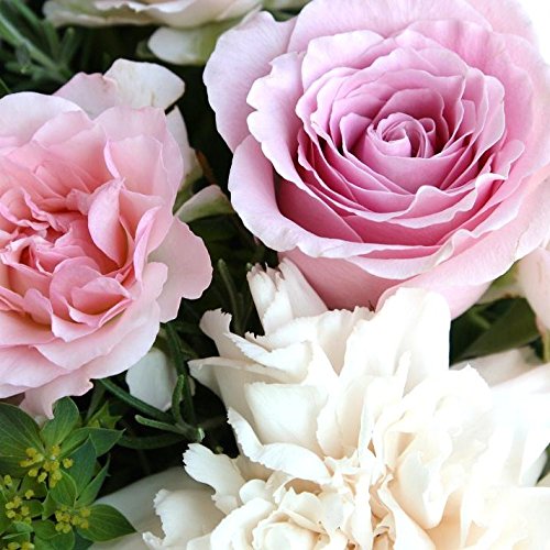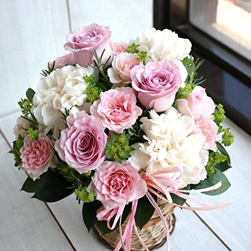- 【サイズ】高さ:約25cm 幅:約25cm 【商品内容】ピンクバラ スプレーバラ カーネーション ローズマリー 小花 グリーン/お手入れのしおり/品質保証書/メッセージカード(希望者のみ) ※商品写真はイメージ写真になります。色目、形態が多少写真と異なる場合もございます。※記載されてる以外の写真の小物類は商品に含まれません。※急なご注文は場所や花材をご指定通りにお届けできない場合もございます。ご了承下さいませ。