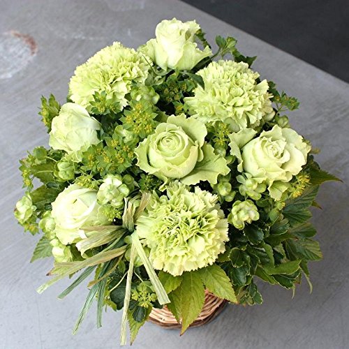 - 【サイズ】高さ:約25cm 幅:約25cm 【商品内容】グリーンバラ グリーンカーネーション スプラーバラ その他小花 グリーンもの/カゴ/お手入れのしおり/品質保証書/メッセージカード(希望者のみ) ※商品写真はイメージ写真になります。色目、形態が多少写真と異なる場合もございます。※記載されてる以外の写真の小物類は商品に含まれません。※急なご注文は場所や花材をご指定通りにお届けできない場合もございます。ご了承下さいませ。