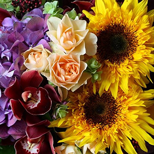 - 【サイズ】高さ:約28cm 幅:約28cm 【商品内容】ゴッホのひまわり シンピジューム スプレーバラ アジサイ その他小花 グリーンもの/カゴ/お手入れのしおり/品質保証書/メッセージカード(希望者のみ) ※商品写真はイメージ写真になります。色目、形態が多少写真と異なる場合もございます。※記載されてる以外の写真の小物類は商品に含まれません。※急なご注文は場所や花材をご指定通りにお届けできない場合もございます。ご了承下さいませ。 ※送料別のアレンジメントとなります。あらかじめご了承ください。