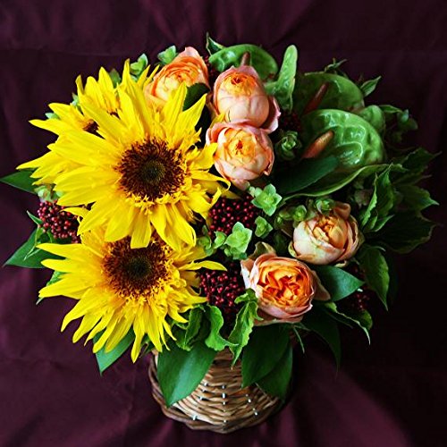 - 【サイズ】 高さ:約25cm 幅:約25cm 【商品内容】ゴッホのひまわり/オレンジバラ/アンスリューム/その他小花/グリーンもの/お手入れのしおり/品質保証書/メッセージカード(希望者のみ) ※商品写真はイメージ写真になります 花材、色目、形態が多少写真と異なる場合もございます。※記載されてる以外の写真の小物類は商品に含まれません。※急なご注文は場所や花材をご指定通りにお届けできない場合もございます。ご了承下さいませ。