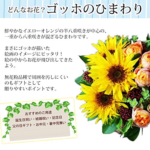 - 【夏季限定】まるで絵の中から出てきたようなひまわり「ゴッホのひまわり」のアレンジメントです。お誕生日プレゼントやお祝い、お見舞い、暑中お見舞いやお中元などにおすすめのお花です。