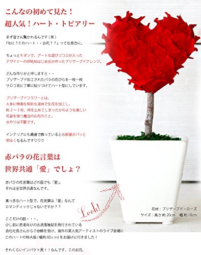 - 枯れないお花「プリザーブドフラワー」を使って、一つ一つプロのフラワーデザイナーが作成したプリザーブドフラワーハートトピアリーです。ハート型の形がとてもかわいらしく、プレゼントに人気のアレンジメントです。