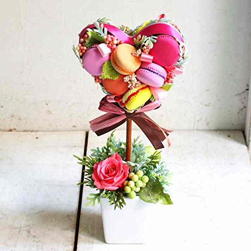 - 枯れないお花「プリザーブドフラワー」と「アートフラワー」を使って、一つ一つプロのフラワーデザイナーがアレンジしました。おいしそうなマカロンも多数アレンジされています。ハート型の形がとてもかわいらしく、足元には華やかなプリザーブドローズをアレンジしました。スイーツ好きさんやケーキ店などの開店のお祝いにも人気のアレンジメントです。