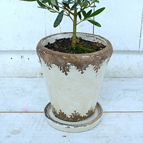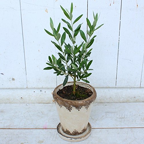 - おしゃれなレトロなアンティーク風陶器鉢に植え付けたオリーブの木(品種:チプッレシーノ)です。オリーブの木はとても丈夫で育てやすいと人気です。植物を育てるのを苦手な方への誕生日プレゼントや新築お祝い、開店祝いなどの各種お祝いの贈り物としてはもちろん、ご自宅用としてもリピーター多数の観葉植物です。