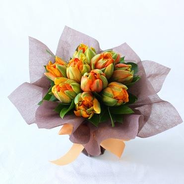 - 珍しい八重咲きチューリップだけで束ねました。 八重咲きなので咲いてくると、どんどんボリュームが出てきます。シンプルだけどかわいい、やさしい花束です。花束のボリューム感とそのまま飾れるアレンジメントの便利さを兼ね備えたアレンジとなっています。花瓶いらずで、届いたらすぐに飾れるので受け取った方に喜ばれます。お誕生日プレゼントや各種お祝いとしてはもちろん、送別会やお見舞い、卒業のお祝い、フラワーバレンタイン等、季節のイベントの贈り物としてもおすすめです。
