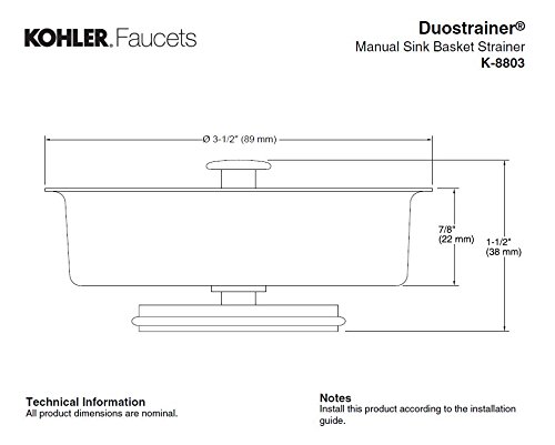 Kohler DuostrainerバスケットStrainer K-8803-0 1